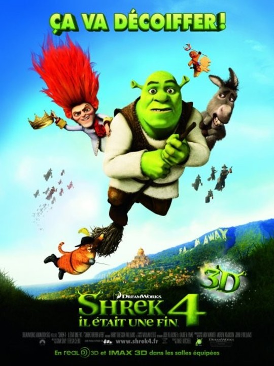 Cinéma / Shrek 4 : Il était une fin (voir la critique Krinein)Que serait devenu le royaume de Fort, Fort Lointain si Shrek n'avait pas existé ? C'est ce que s'apprête à vivre l'ogre vert après avoir signer un pacte avec le beau-parleur démoniaque Rumpelstiltskin alias Tracassin. Shrek voulait retrouver l'époque où il était un vrai ogre, il découvre plutôt une version alternative de Fort Fort Lointain. La chasse à l'ogre y est un sport national et Fiona et Shrek ne se sont jamais rencontrés. A l'ogre et à sa nouvelle équipe de maintenant remettre tout en place et reconquérir le coeur de sa belle toute verte.